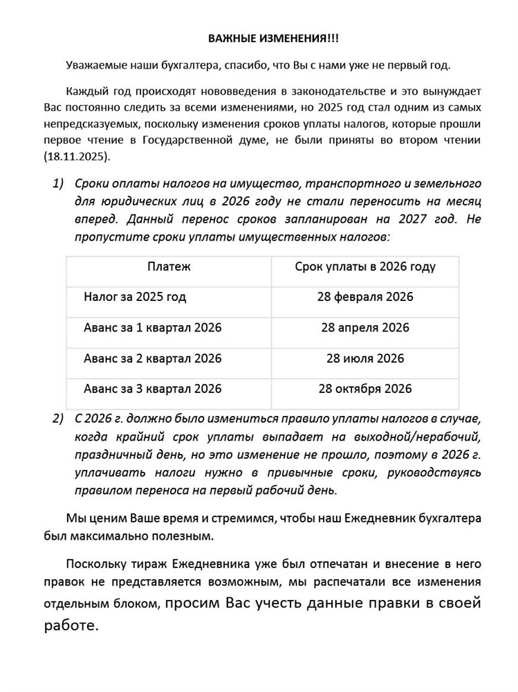 -сроки сдачи предстоящих отчетов, подачи уведомлений по ЕНП, страховых взносов, статистической отчетности, налога на прибыль, отчетности в ИФНС, новые сроки уплаты НДФЛ и так далее. Другими словами ВСЕ отчеты, сдаваемые бухгалтером в течение года, график налоговых платежей и взносов с учетом всех изменений в законодательстве на 2026 год!